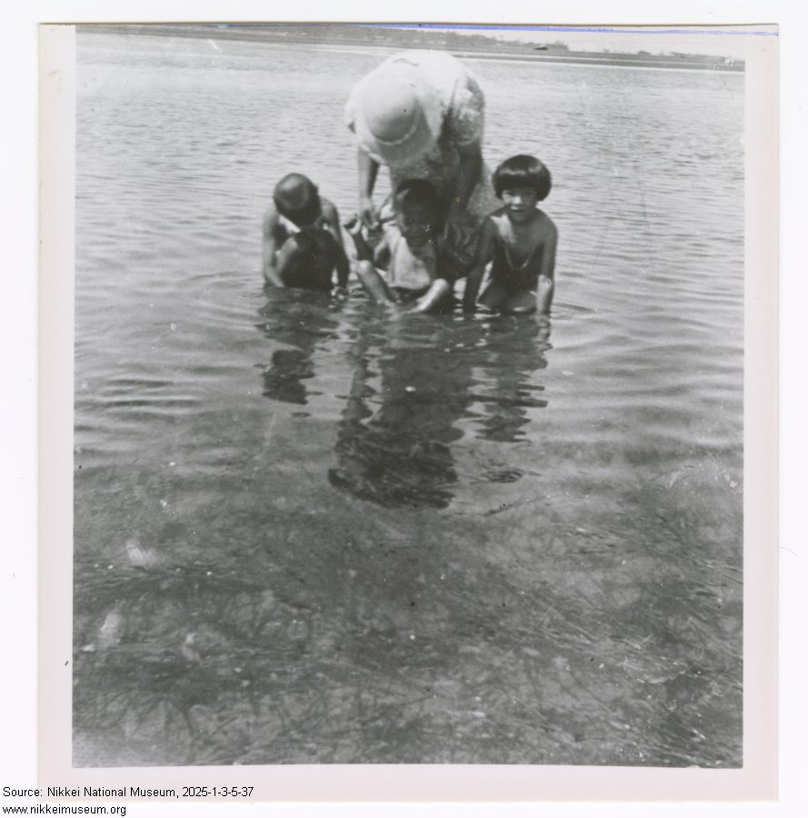 | description | This item is a black and white photograph of Yukiye Uyeda standing with her children in a lake in White Rock, BC, circa 1930s. In front from left to right are Masayuki, Atsushi, and Teruko. Yukiye is standing behind the children, crouched over to hold Atsushi's shoulders. On the verso of the photograph is written "White Rock / Mom Masa, Atsu, Teruko". |